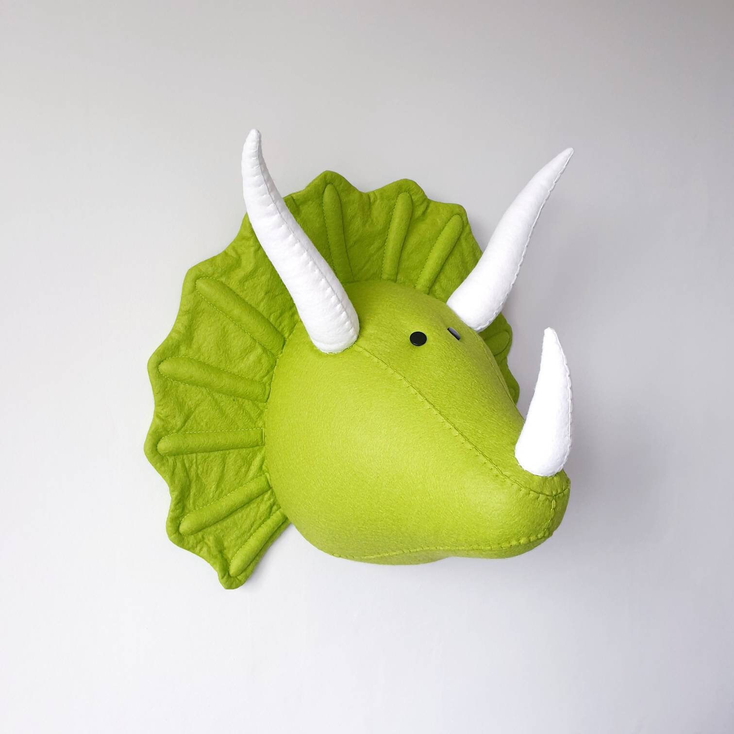 Triceratops Faux Taxidermy Dinosaur Green Felt Wall Etsy Osterreich