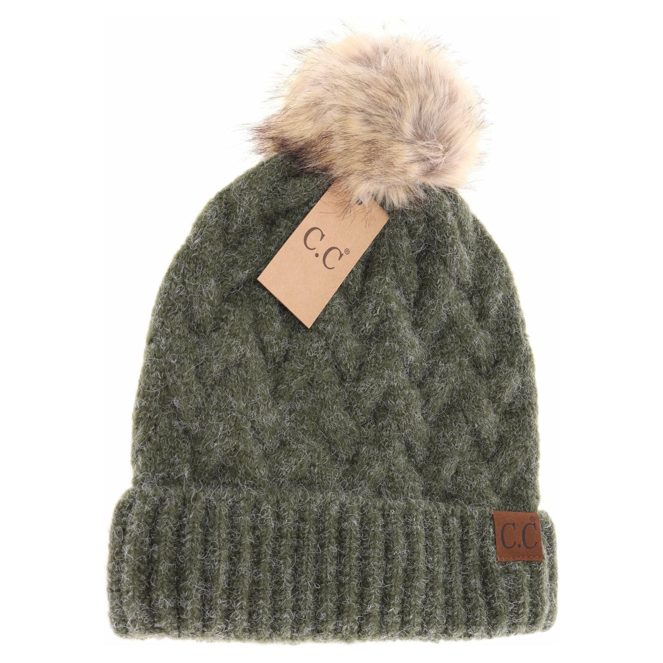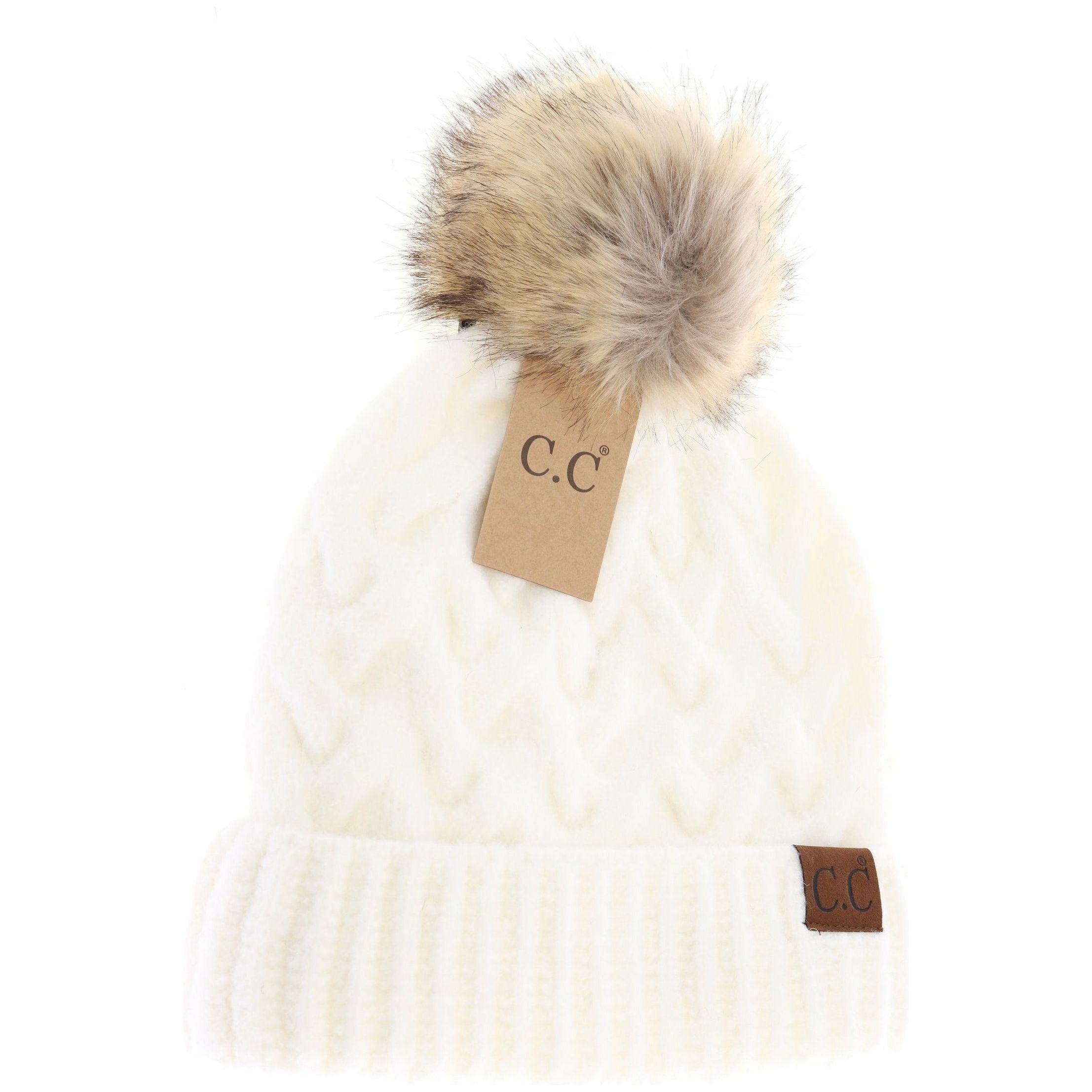Chunky Braided Cable Knit Fur Pom C C Beanie Hat7384 Ccbeanie Com