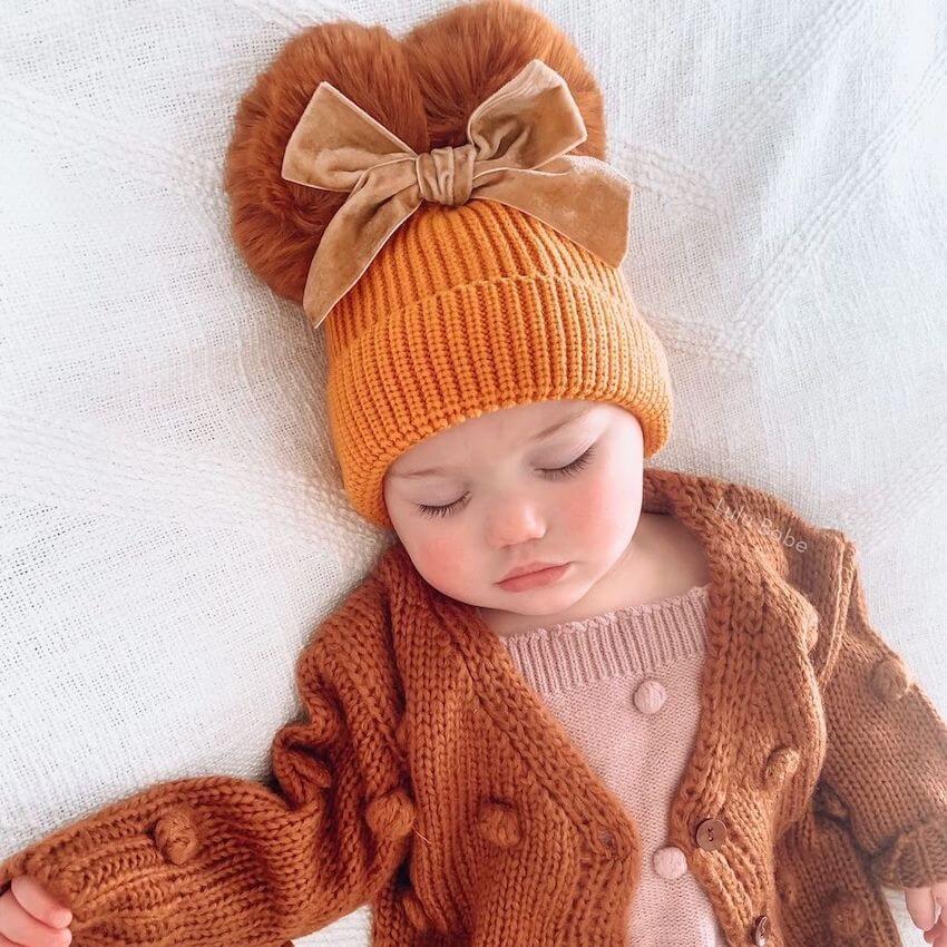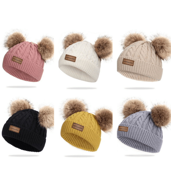 Double Pom Pom Baby Beanie Girls Luxury Ribbed Beanie