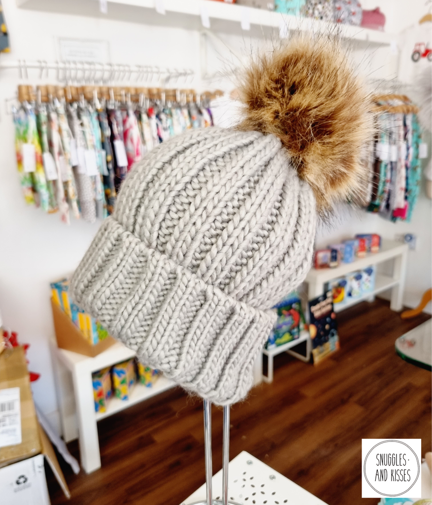 Adults Kids Single Pom Pom Hat Snuggles And Kisses